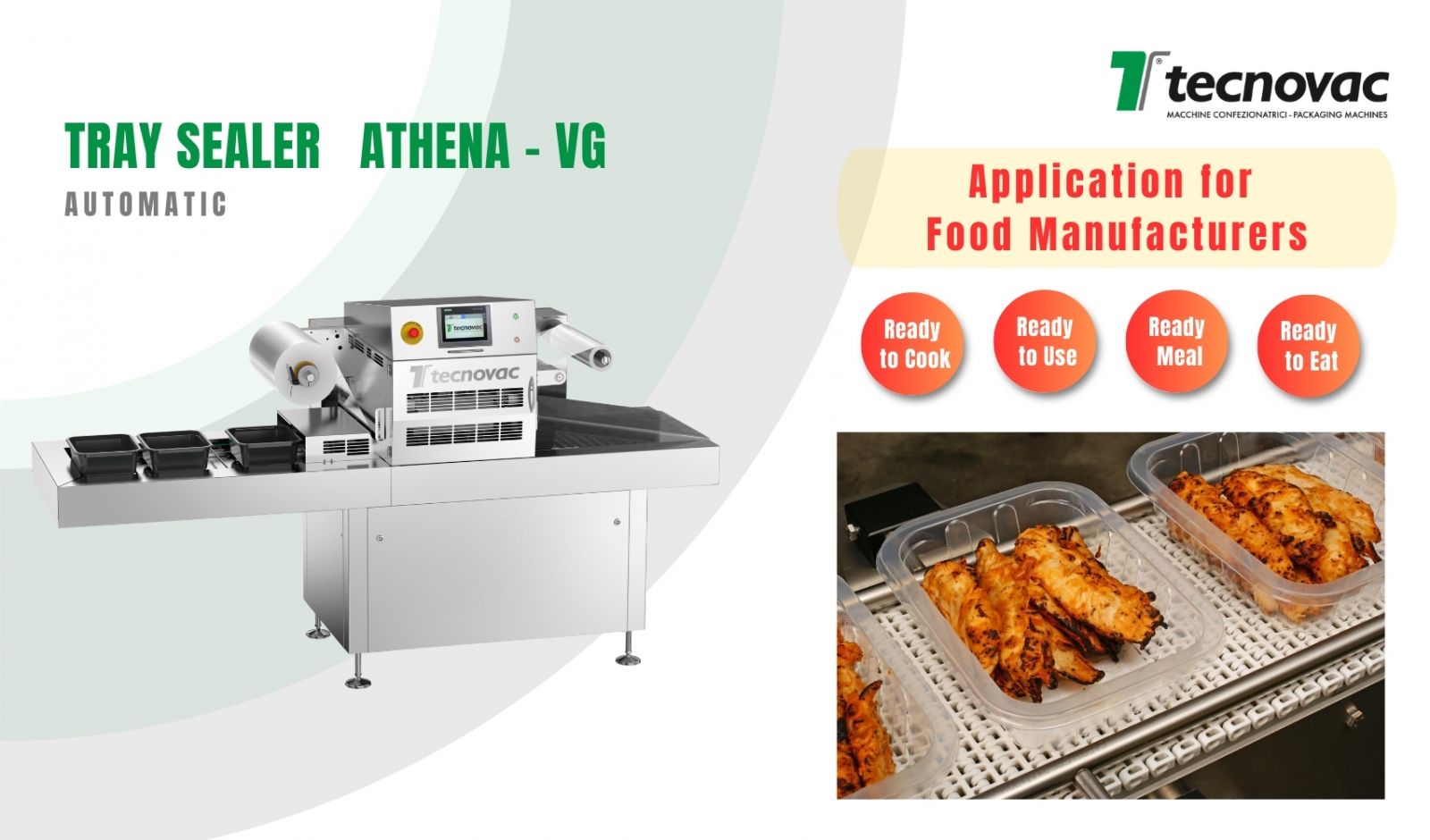 Thiết bị đóng gói khay tự động Athena - VG là một loại máy hoàn toàn tự động, mạnh mẽ và đáng tin cậy, được chế tạo hoàn toàn bằng thép không gỉ. Sử dụng cho đóng gói bao bì thực phẩm theo công nghệ thổi khí cải tiến MAP/ EMAP