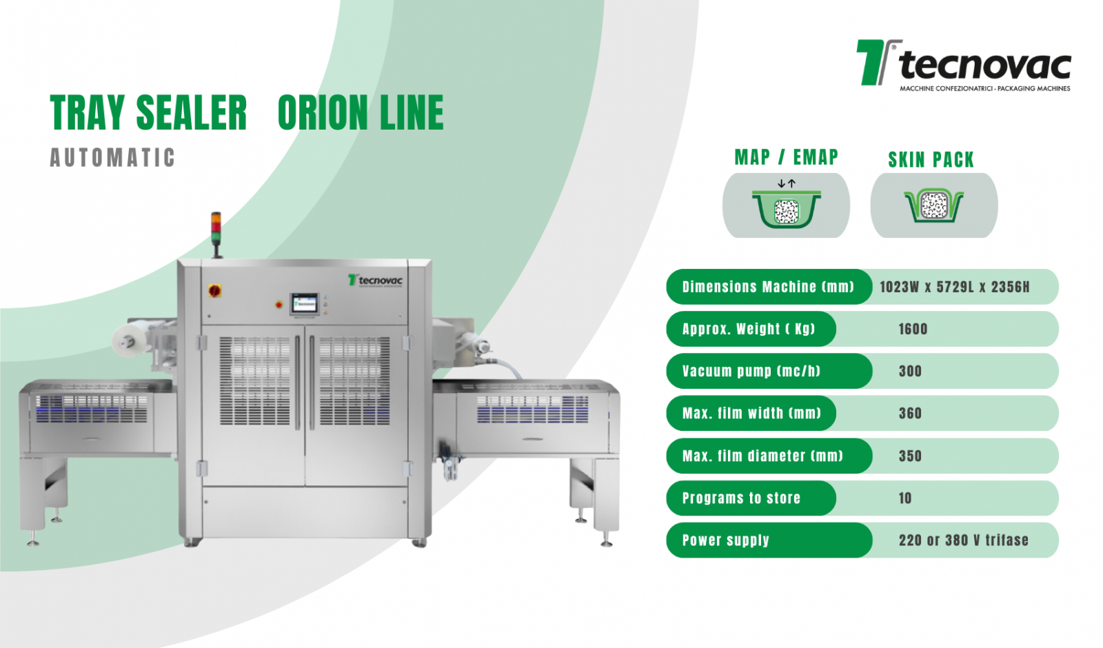 Máy đóng gói khay ORION VG là một máy hoàn toàn tự động, mạnh mẽ và đáng tin cậy, được thiết kế cho sản xuất công nghiệp. Máy được phát triển để tích hợp hoàn hảo vào các dây chuyền hoàn toàn tự động, với tốc độ, độ chính xác và độ tin cậy là những yêu cầu quan trọng.